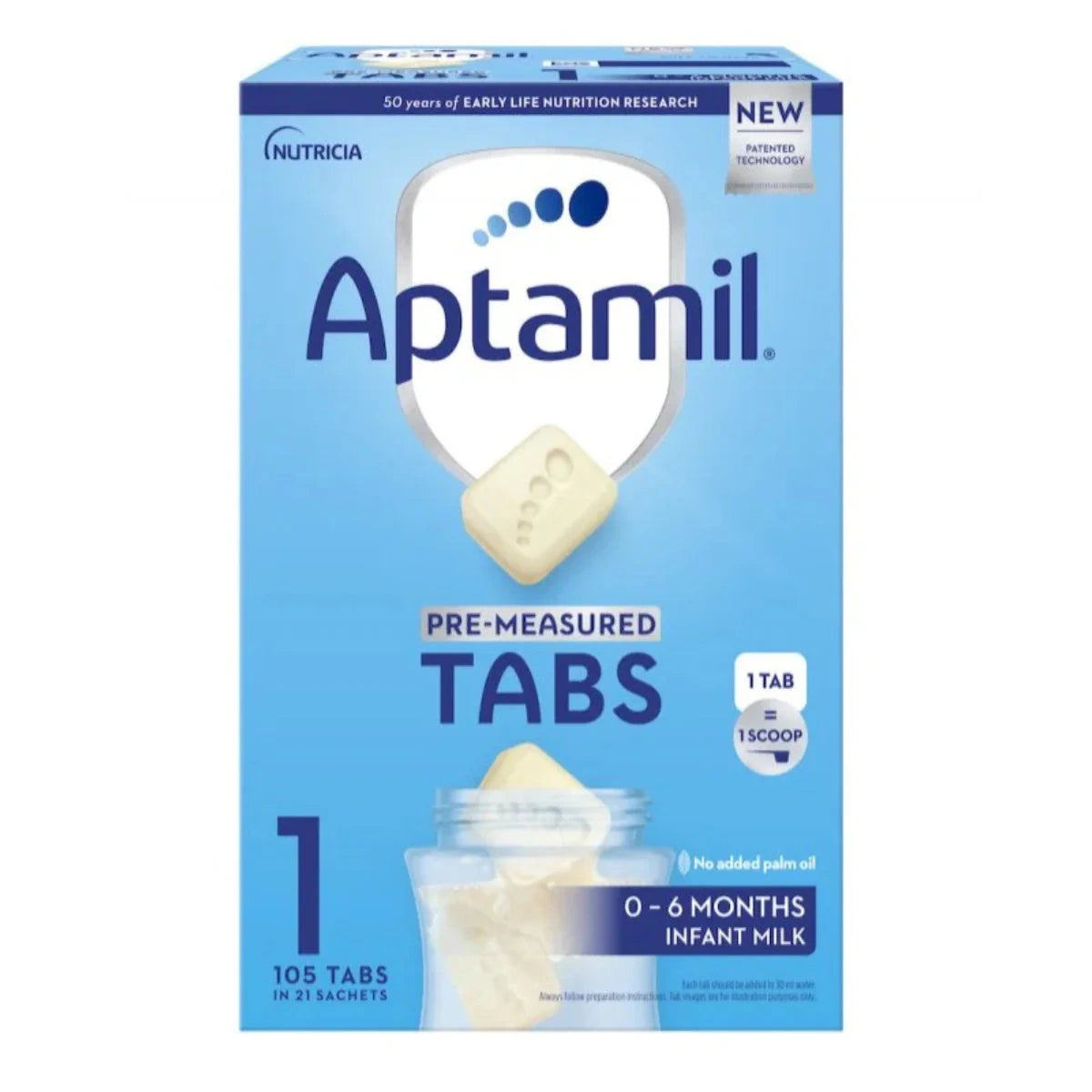 Aptamil 1 Tabs Milk Formula is a convenient and innovative way to prepare infant formula for babies from birth up to 6 months. Each pack contains 105 pre-measured cubes in 21 sachets (479 g total), making it quick, easy, and hygienic to prepare a bottle at any time.