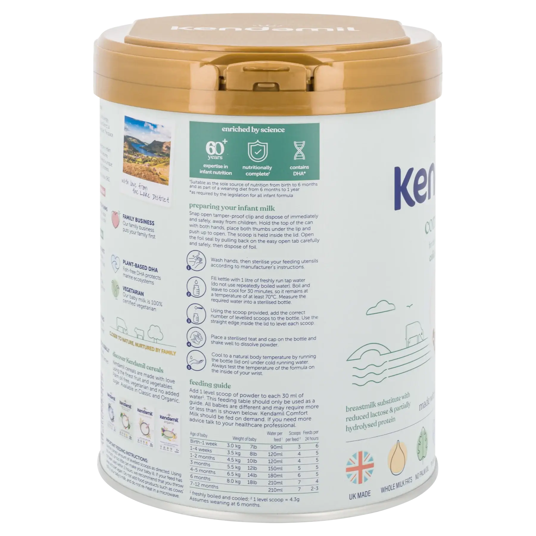 Kendamil Comfort Formula is a gentle infant formula suitable from birth, specially developed for babies with sensitive digestion, colic, constipation, or gas. Made with full-cream cow’s milk from local British farms, it provides complete and balanced nutrition while being easy on tiny tummies.