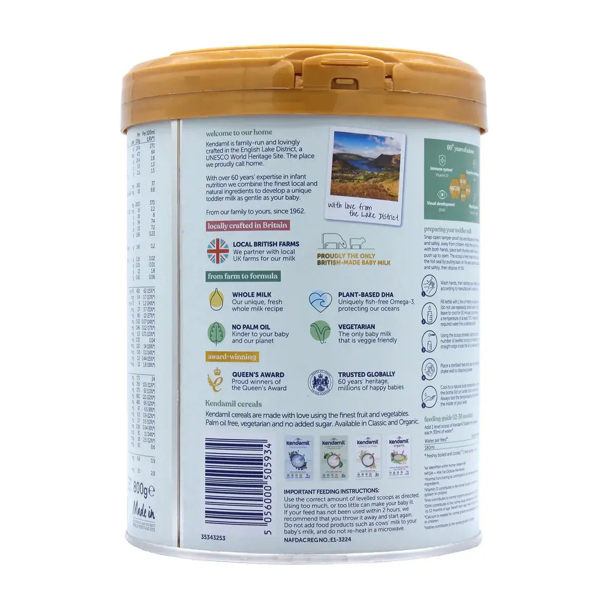 Kendamil Stage 4 is free from palm oil, fish oil, soy, and GMOs, making it a clean, sustainable, and vegetarian-friendly choice. Each tin contains 800 g of formula, produced under strict European quality standards to ensure safe and wholesome toddler nutrition.